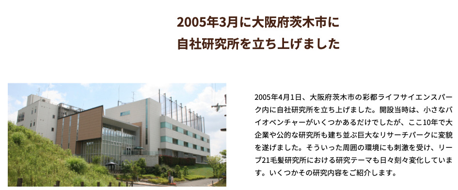 実は、リーブ21では専門の研究所を設け脱毛治療や商品を45年研究し続けている。