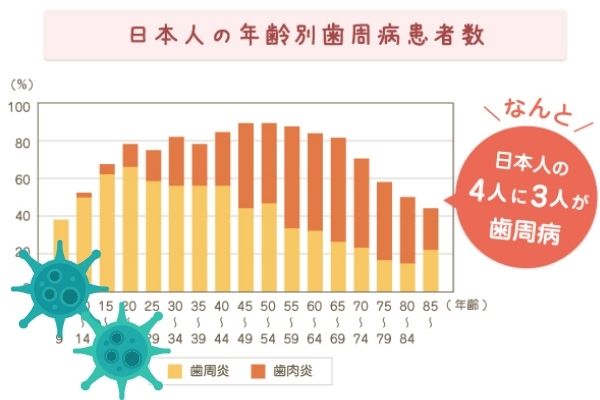 皆さんは、日本人の成人の約8割が歯周病という事実を知っていましたか?