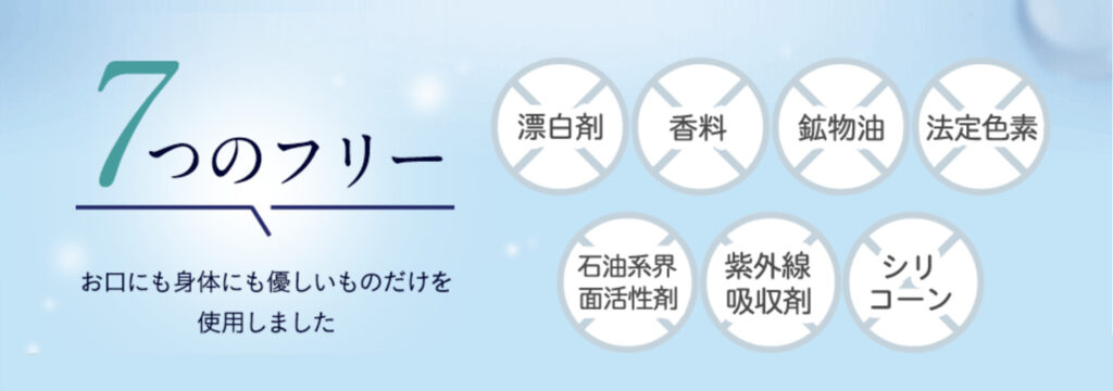 さらに『ブレスマイルウォッシュ』は、お口に優しい成分のみを厳選し、7つの無添加にこだわって製造。