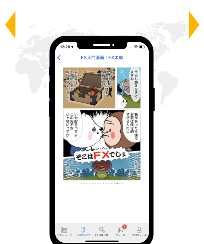 FXなびは、初心者の方でもで基礎から学べて、ノーリスクでFXをゲーム感覚でデモトレードができるアプリです。