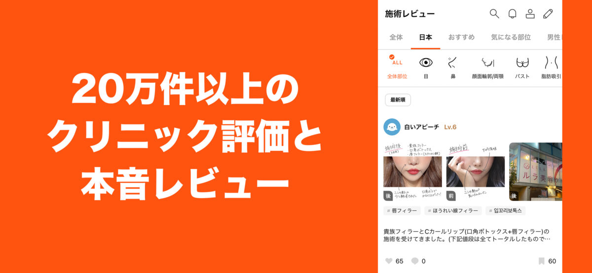 20万件以上のクリニック評価やレビューは、施術を受けた人のみが書き込める為、信頼できる情報しか掲載されていません。