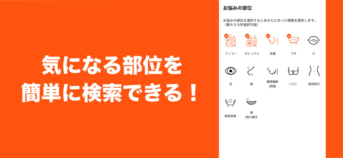 気になる部位がある場合は、この機能を使うと簡単に自分自身に合ったクリニックや施術を見つける事ができるので非常におすすめです。