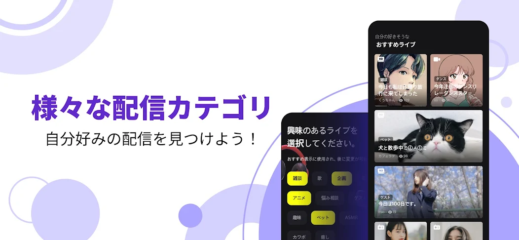 幅広いカテゴリーの中から、自分の見たい配信を選んで楽しむことができちゃいます!