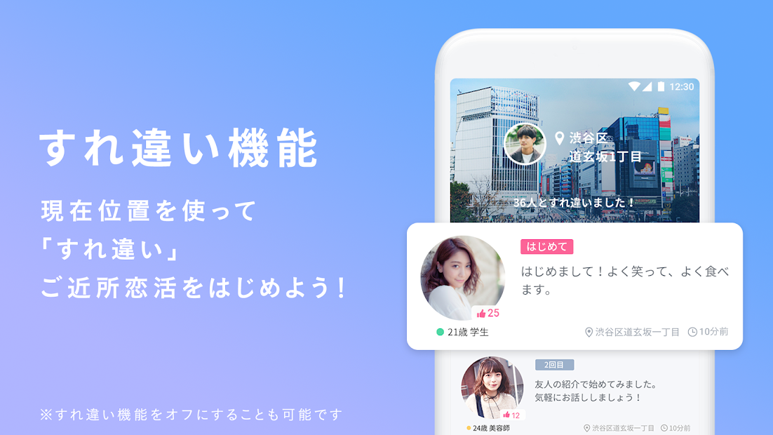 すれ違い機能がついてるので、自分のいる場所付近ですれ違った人が分かるし、色んな話が出来るし今までの出逢い系アプリより楽しいと思う。