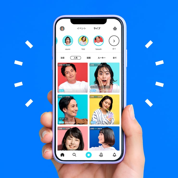 視聴や配信を無料で楽しむことができるアプリとなっており、配信者も一般の方だけではなくモデルや俳優、歌手など様々なライバーたちが毎日配信中です!