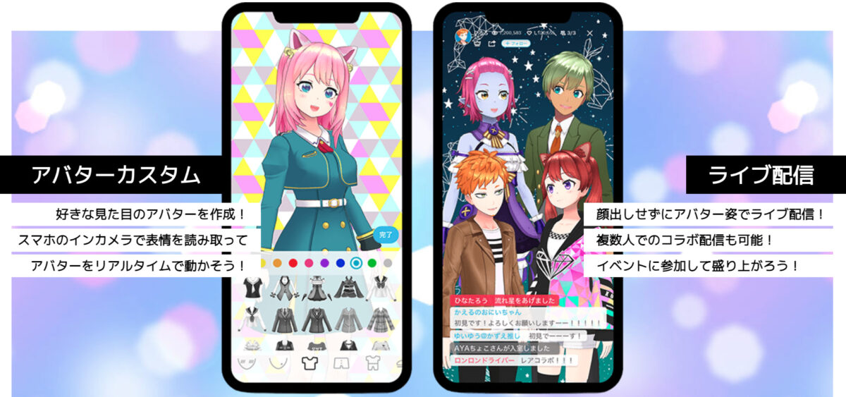 自分好みのアバターを作って、簡単な操作で気軽にライブ配信を行う事ができるので、スマホの操作に自信が無い人でも安心して配信活動を始める事ができるので、是非挑戦してみてください!!