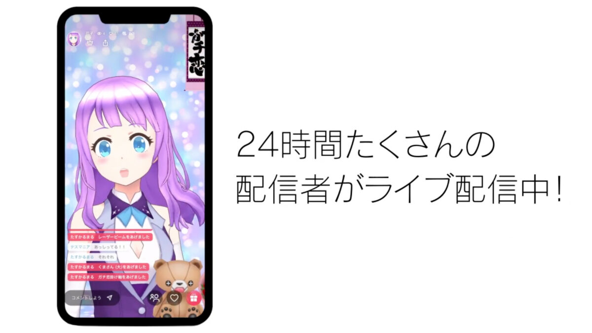 さまざまな配信者さんが、それぞれの個性を爆発させて24時間いつでもライブ配信を行っています!