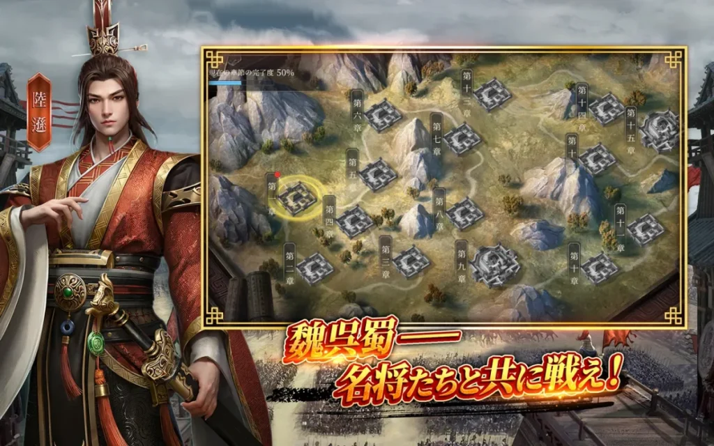 - 武将達を率いて他プレイヤーとの戦いを楽しめる