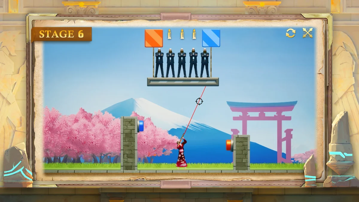 障害物を避け、壁に当たって跳ね返った後の弾道を予測しながら、敵を倒しましょう!